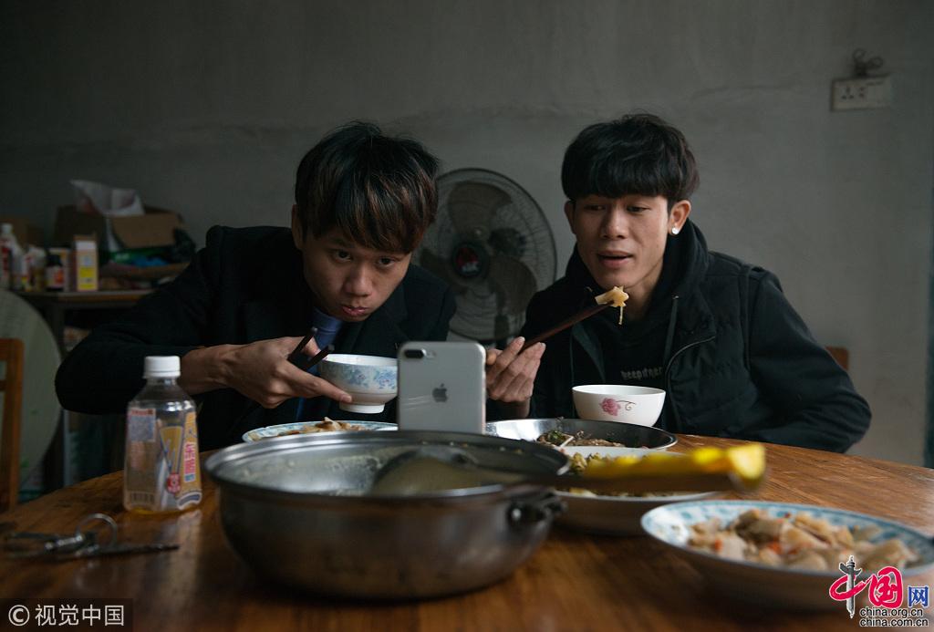 村民们一方面对于直播这样新鲜的事物感到好奇,另一方面又对他们不可思议的行为嗤之以鼻。“一开始看到他们在村里滚泥地,跳池塘,男扮女装,以为他们是发疯了,变成神经病,有事没事还跑来我的猪圈拍,那时真的想不明白。”三炮的四叔说,“后来不断有那些粉丝大老远跑来拍照,我就知道了,这网红跟歌星差不多。” 现在,四叔在山上放羊时,偶尔也会拿手机出来刷他们的视频,给他们点赞。图片作者:Chin Chen/视觉中国