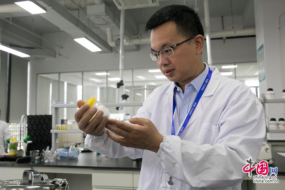 约克成立后,曾福泉不断优化自己的技术,致力于中国食品安全包装新材料的开发。“目前,我们在进行的项目有‘活性塑料析出物阻隔新材料’和‘金属罐替代新材料’。在普通塑料瓶中加入约克研发的添加剂,组合成塑料饮料包装新材料,用这种新型塑料瓶灌装饮料,可以达到所要保护的效果,比如饮料的口感,饮料中的营养成分等等,为人们提供更优质、健康的饮料。” 目前,曾福泉带领团队通过不断的技术创新实现了原材料的本土化、产品的商业化,打破了欧美国家的垄断,填补了中国在液体色母技术上的空白,推动了液体色母在塑料行业的推广和化纤在线染色的生产应用。中国网记者 董宁摄影