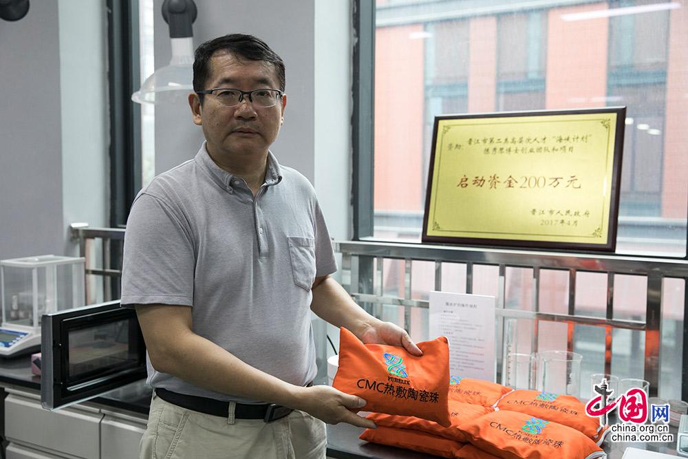 杨少明向记者展示了目前已经开发的碳纳米纤维的初级产品,热敷陶瓷珠,具有保健和促进良好睡眠的功效。 选择晋江,杨少明给出了两个理由,一是当地的人才引进计划——“海峡计划”充满诚意,二是市政府的配套工作细致贴心。“我最后决定在晋江创业的很大原因是‘海峡计划’。2016年,我参加‘海峡计划’评审,获得二类评价,得到了政府提供的很多优惠待遇。像我现在使用的近300平方米的办公场所就是政府提供的,而且3年内不收取任何租金。此外,政府还分阶段一共赞助了200万元的资金,大大减轻了我的创业负担。在生活方面,政府也很照顾我的家庭。刚来晋江的时候,由于申请住房补贴等手续办理起来比较慢,政府就先为我们安排了可以拎包入住的临时宿舍。有时读不懂创业补助政策,政府还有人才专员上门为我们解读。” 中国网记者 董宁摄影