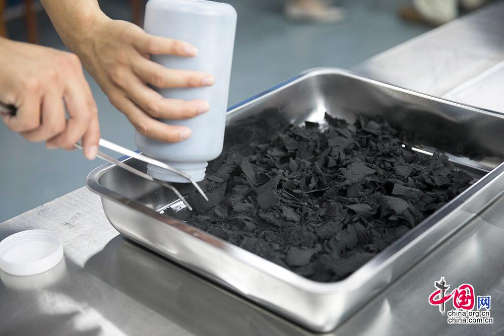 图为杨少明夫妇团队量产的手性碳纳米纤维,他们团队的组建,填补了我国手性碳纳米纤维综合开发的空白,对我国手性碳纳米纤维的开发走在世界前沿有重要的意义。 中国网记者 董宁摄影