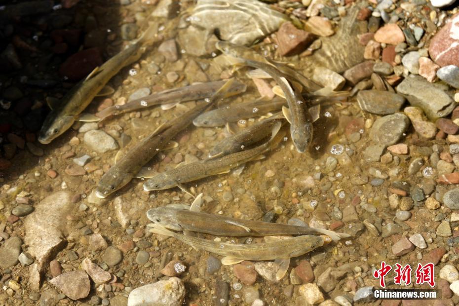 7月10日,在河水中逆流而上的湟鱼。在青海海北藏族自治州刚察县泉吉河畔,成千上万的青海湖裸鲤经过长途跋涉的生命洄游,来到此地繁衍生息。青海湖裸鲤,又称湟鱼,为青藏高原土著鱼类,是青海湖中特有的物种,是青海湖中唯一的大型经济鱼类,也是青海湖“水—鸟—鱼”生态链中的核心物种,2004年青海湖裸鲤被列入《中国物种红色名录》濒危物种名单中。每年5月下旬到8月中旬,在湖中生长的湟鱼会沿着入湖河流溯流而上,进入到河流淡水区域产卵,然后再回到湖中。青海湖环湖地区有数十条淡水河与湖相连,其中,布哈河、沙柳河、泉吉河、黑马河和哈尔盖河是湟鱼洄游的主要河道。中新社记者 马铭言 摄