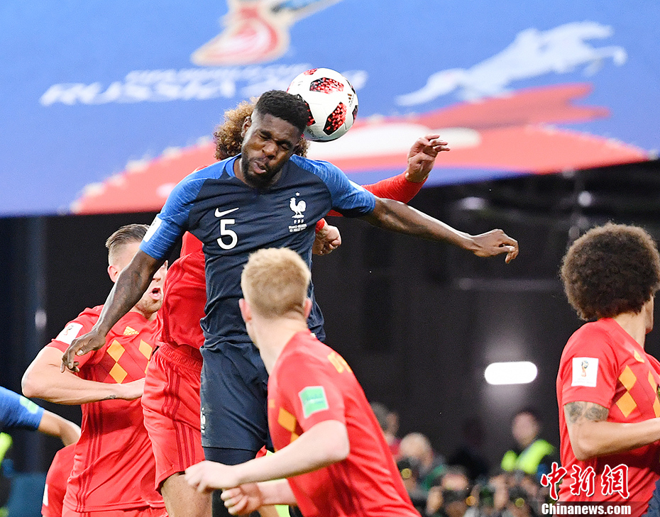 北京时间7月11日凌晨,2018俄罗斯世界杯第一场半决赛在圣彼得堡体育场打响,由“高卢雄鸡”法国迎战“欧洲红魔”比利时。这是一场身价高达18亿欧元的对决,被称为“提前上演的决赛”,最终法国人笑到了最后。 中新社记者 毛建军 摄