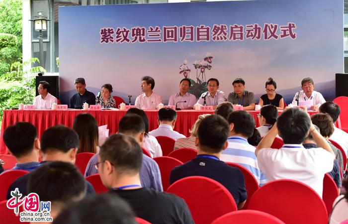 在紫纹兜兰回归自然启动仪式上,中国野生植物保护协会、中国花卉协会、中国中药协会、中国植物园联盟、世界自然基金会、百度、阿里巴巴、穷游网、58同城等16家单位发起了“保护野生兰花,拒绝无序买卖”倡议,呼吁把兰科植物尽早纳入国家重点保护对象,呼吁制止当前盲目利用野生中药材及因园林造景、展会展览等某些社会活动导致乱采滥挖野生兰科植物的现象,倡导在电商平台劝阻贩卖野生兰花商户,号召消费者拒绝购买野生兰花。来自国家林业和草原局、相关省市区林业厅(局)、中医药部门、行业协会、非政府组织、保育机构、主要电商平台和培植企业的代表还就我国兰科植物的就地保护、迁地保护、法律状况、资源情况、社会需求、管理措施等进行了深入研讨,就如何加强兰科植物保护提出针对性措施建议。