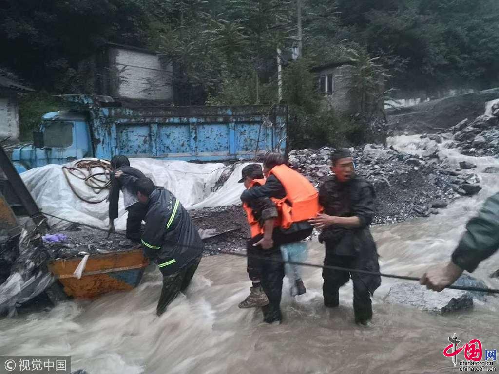 2018年7月17日消息,7月15晚10时,派往略阳县横现河街办横现河村的24名武警官兵回来了,他们从山上安全转移回来180名被困群众。