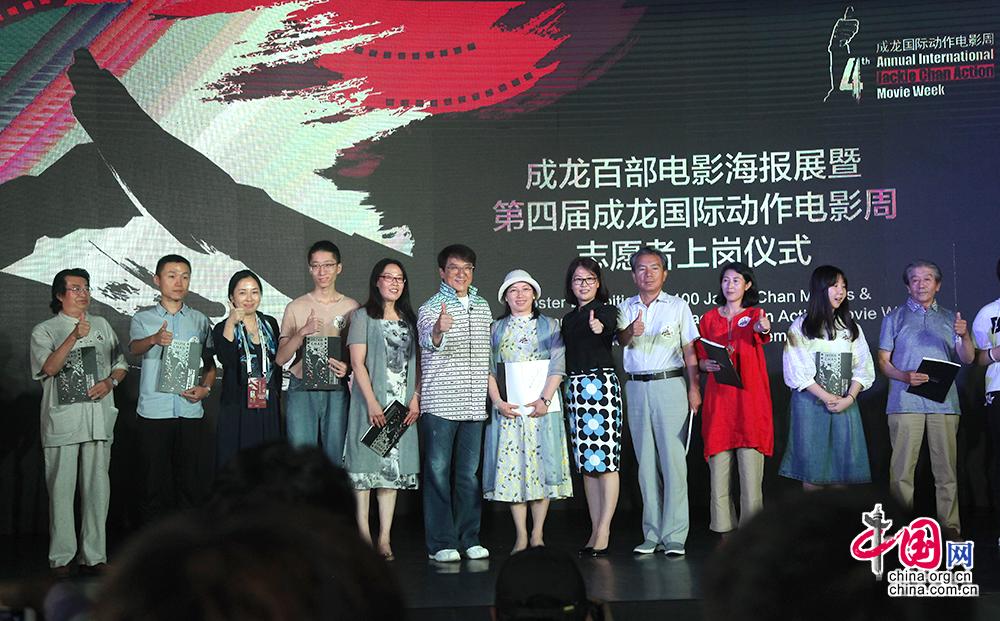 7月17日,成龙百部电影海报展暨第四届成龙国际动作电影周志愿者上岗仪式在中国雕塑博物馆举行。本次展览展览以成龙电影为纽带,以成龙艺术作品为核心元素,展示以成龙为代表的中国电影和电影人的世界发展之路。