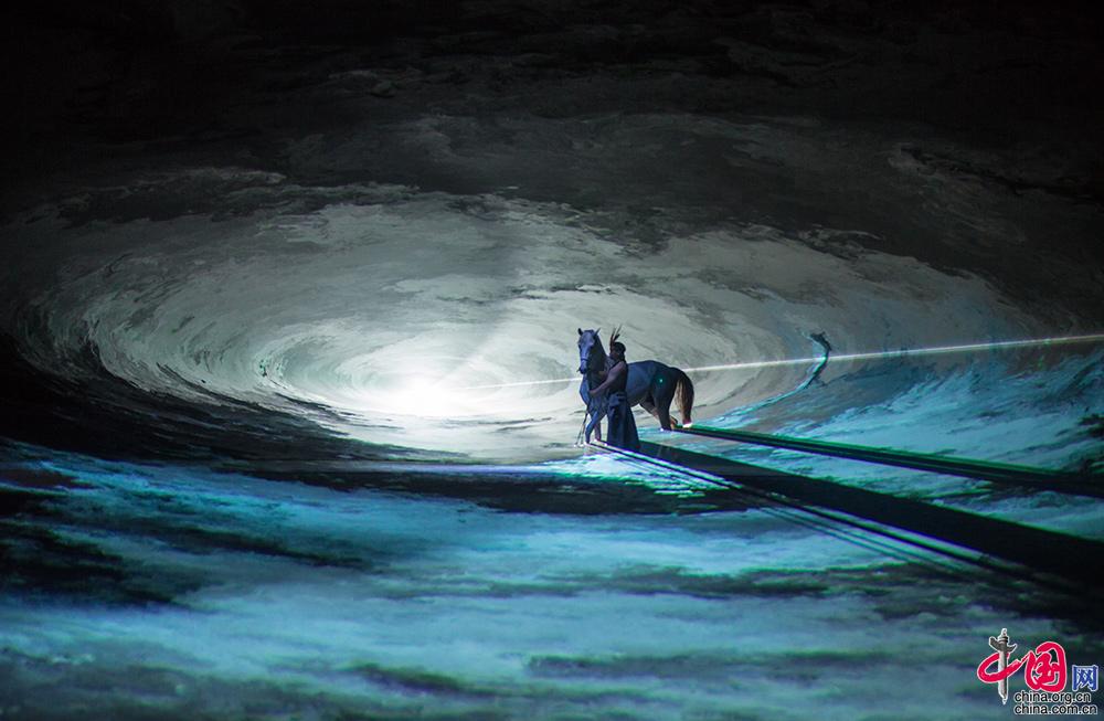 7月18日,在锡林浩特市中国马都核心区马文化演艺厅演出的大型室内实景剧《蒙古马》。 中国网 伦晓璇 摄影