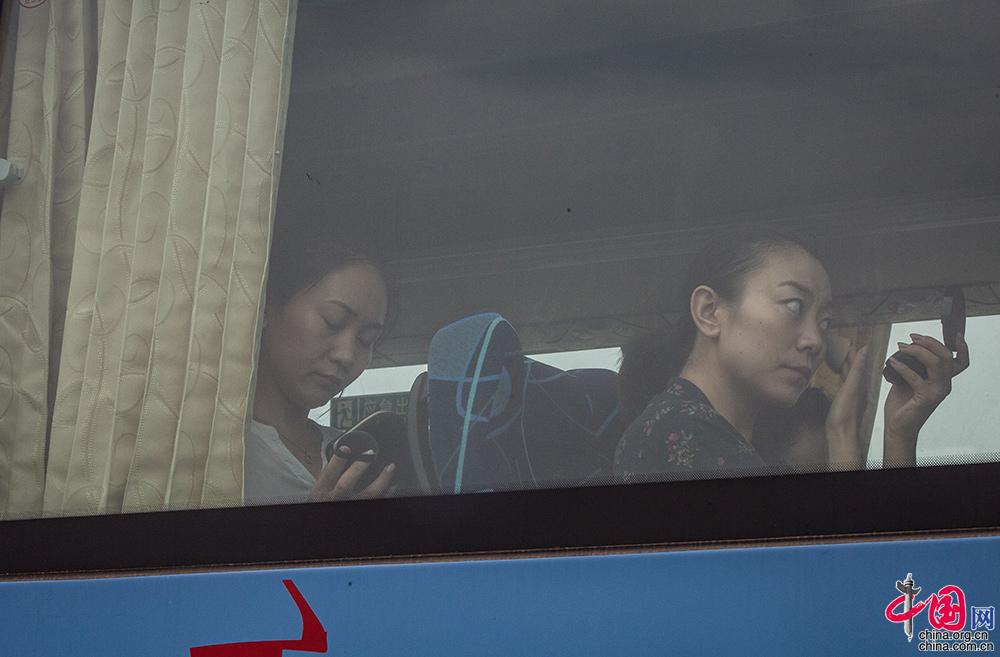 队员们就地换上表演服饰,准备进行演出。中国网记者 伦晓璇 摄