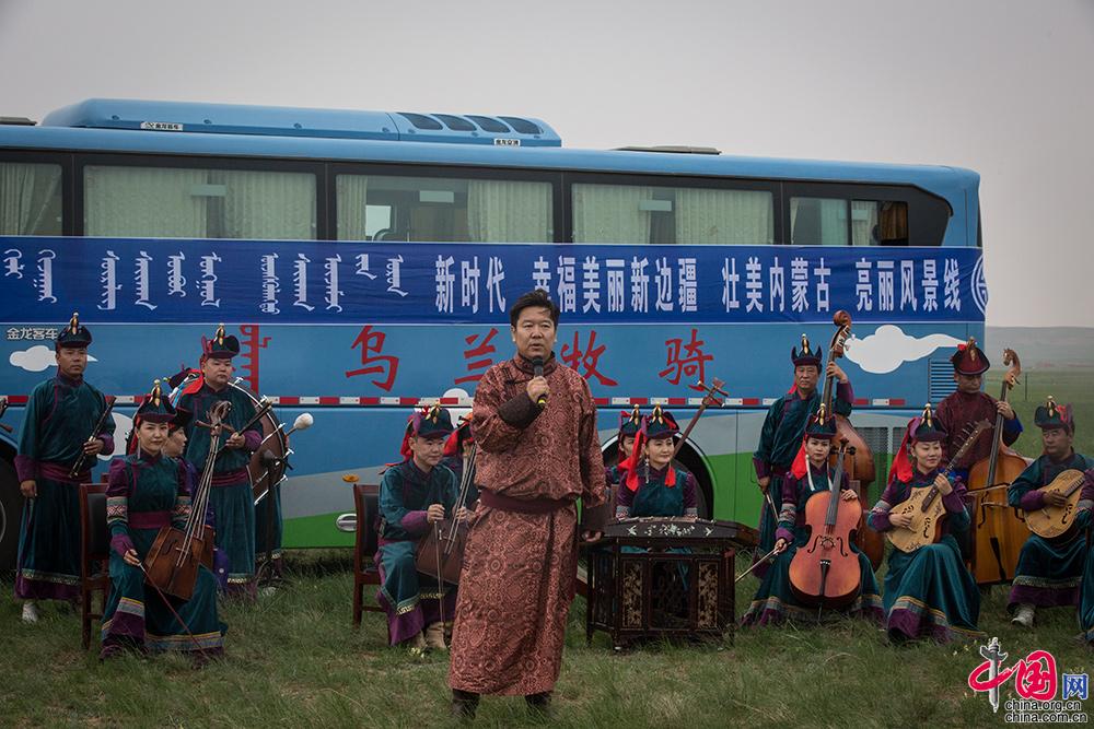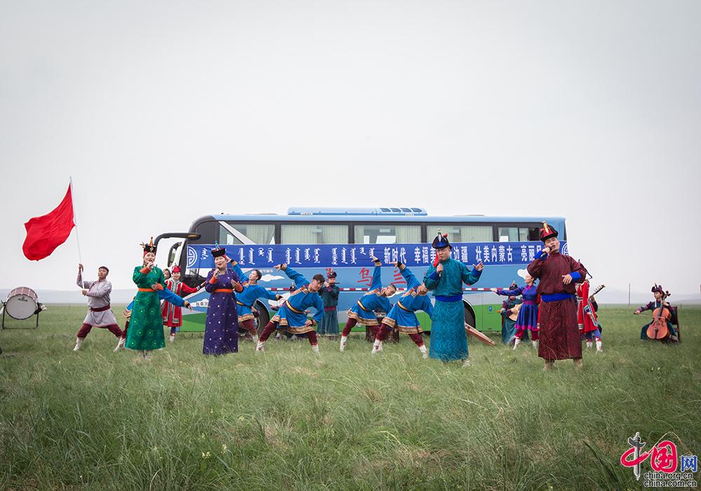 一辆载着苏尼特右旗乌兰牧骑队员的大巴车驶向锡林浩特市宝力根苏木胜利嘎查,他们即将在这里开展一场演出。乌兰牧骑,蒙古语为“红色的嫩芽”,意为红色文化工作队,是活跃在草原上的文艺宣传队。从1957年第一支乌兰牧骑在锡林郭勒盟苏尼特右旗诞生后,乌兰牧骑很快就像雨后春笋似的在草原上传播开来。中国网记者 伦晓璇 摄