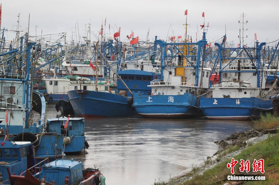 7月22日12时30分前后,今年第10号台风“安比”在上海崇明东部登陆,这是时隔29年后,再次有台风从海上西行直接登陆上海,对上海造成正面袭击。图为受台风影响船舶进港口避险。 中新社记者 张亨伟 摄