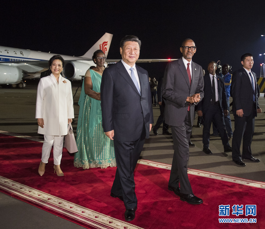 习近平是在结束对塞内加尔国事访问后抵达基加利的。离开达喀尔时,习近平出席塞内加尔总统萨勒在机场举行的欢送仪式。习近平和彭丽媛抵达机场时,萨勒和夫人玛丽梅在停车处迎接。两国元首夫妇一同前往停机坪。两国元首登上检阅台。军乐队奏中塞两国国歌。习近平在萨勒陪同下检阅仪仗队。习近平和彭丽媛同塞方送行人员道别。萨勒夫妇同中方陪同人员道别。