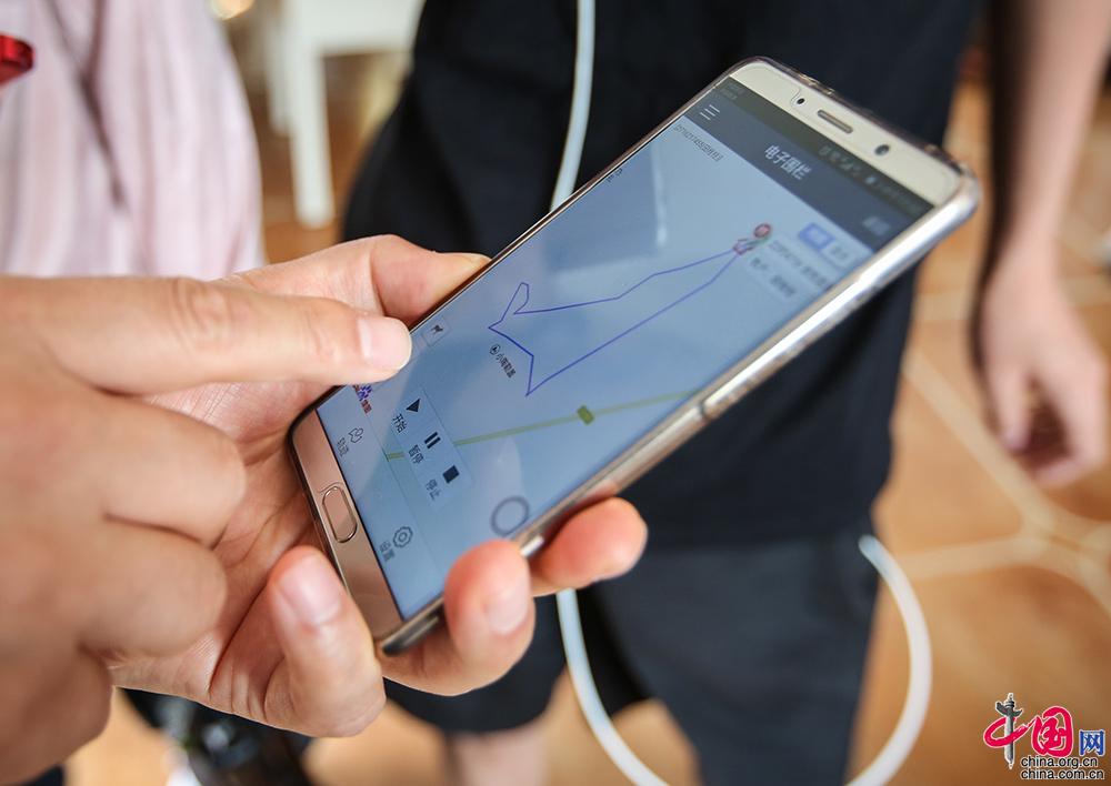 苏尼特左旗财政局副局长陈晓刚介绍,平台的智慧牧场管理系统除了能监控羊群动态,还能通过对领头羊的定位来实时监控羊群位置。图为陈晓刚展示羊群的行动轨迹。中国网记者 伦晓璇 摄
