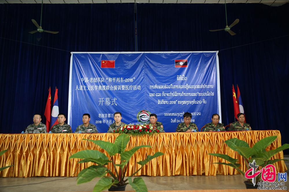中国网7月25日讯(通讯员 周娜 马孝武)当地时间7月24日下午,“和平列车-2018”中国-老挝人道主义医学救援联合演训活动在老挝后勤学院拉开帷幕。这是中老两军历史上首次开展联合演训活动,也是我军首次与东南亚国家开展双边卫勤联演。