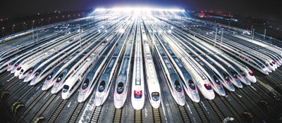 2月1日凌晨,动车组停靠在武汉动车段的存车线上,准备进行检修和保温作业。