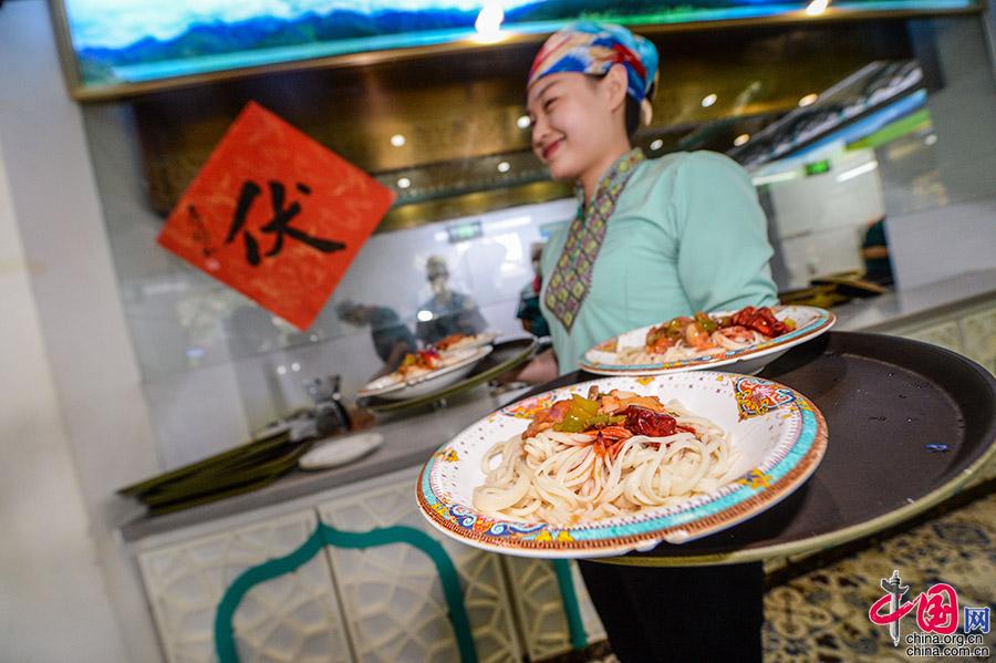 头伏饺子二伏面。7月27日是今年的“二伏”头一天,京城不少饭店推出特色面食,吸引市民前来品尝。在老店帕米尔食府,厨师们用过水面搭配王致和腐乳,创新制作出“腐乳拌面”,让前来吃饭的市民眼前一亮。(主办方供图)
