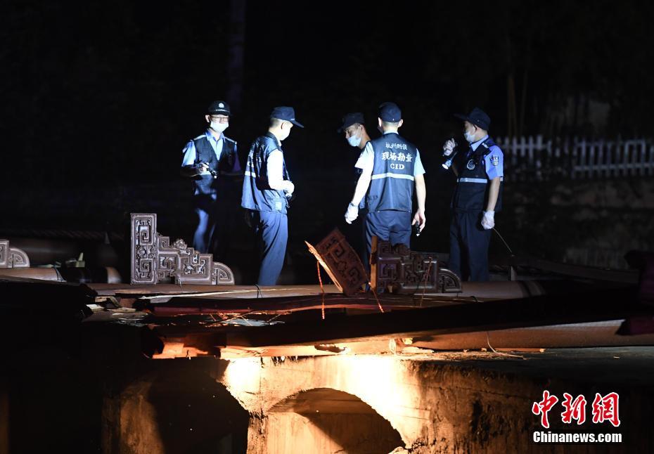 7月28日,多名勘查人员正在对垮塌现场进行勘查。中新社记者 王刚 摄