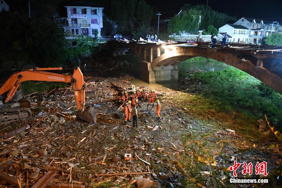 7月28日,廊桥桥顶垮塌现场。中新社记者 王刚 摄