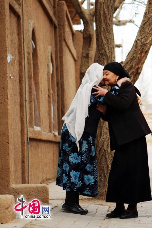 女性相互拥抱,行贴面礼。(高丁博 摄影报道)