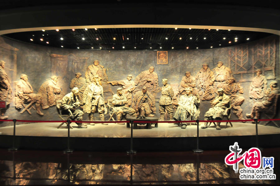 遵义会议纪念馆第一大厅正中央拜访着“遵义会议正在召开的雕像”。 中国网鲁楠/摄影