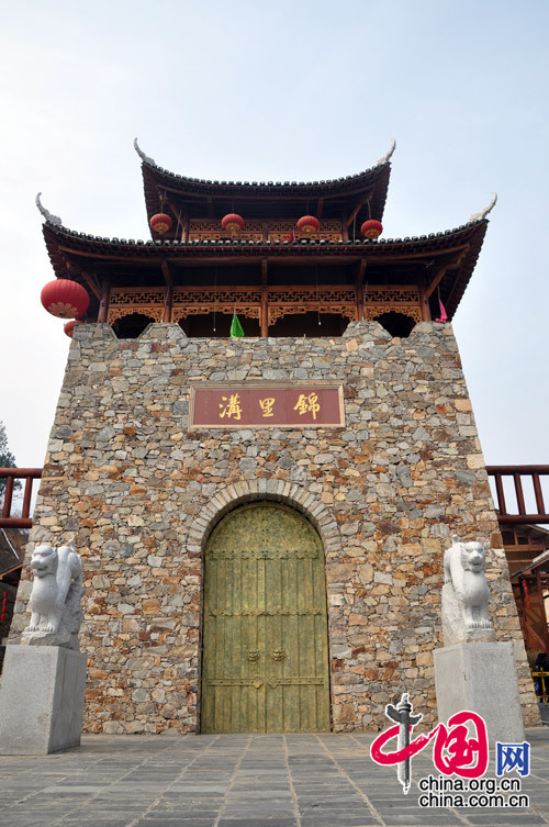 锦里沟位于武汉市黄陂区田家湾村,是一个土家族人口集中居住的乡村。图为锦里沟景区入口处碉楼。李刚摄
