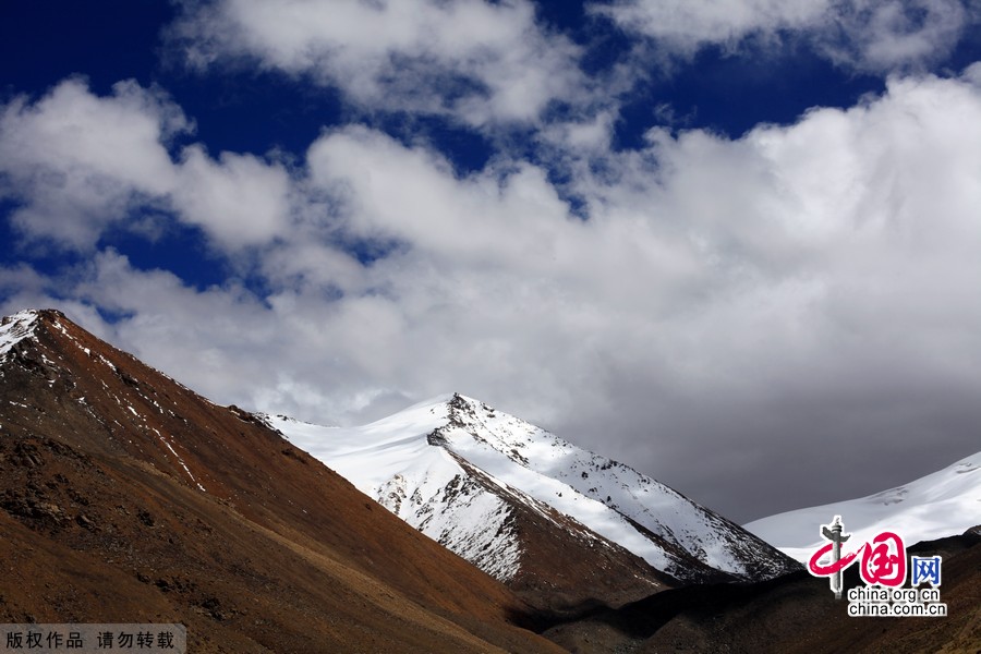 遥望七一冰川,正值夏季,山顶却覆盖皑皑白雪。中国网 杨丹 摄影