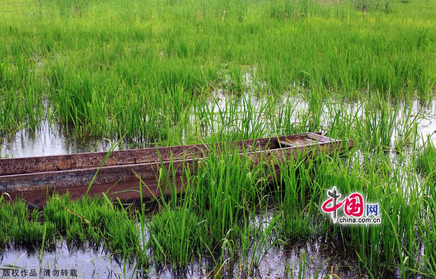 草海在泸沽湖的东南面,图为草海孤舟(中国网 杨丹摄影)