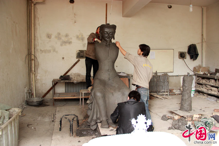 民族工艺技师在塑造泥塑(通常是按图纸或图片制作)。据介绍,较大的泥塑需要十天左右才能完工。中国网 石宇昕摄影