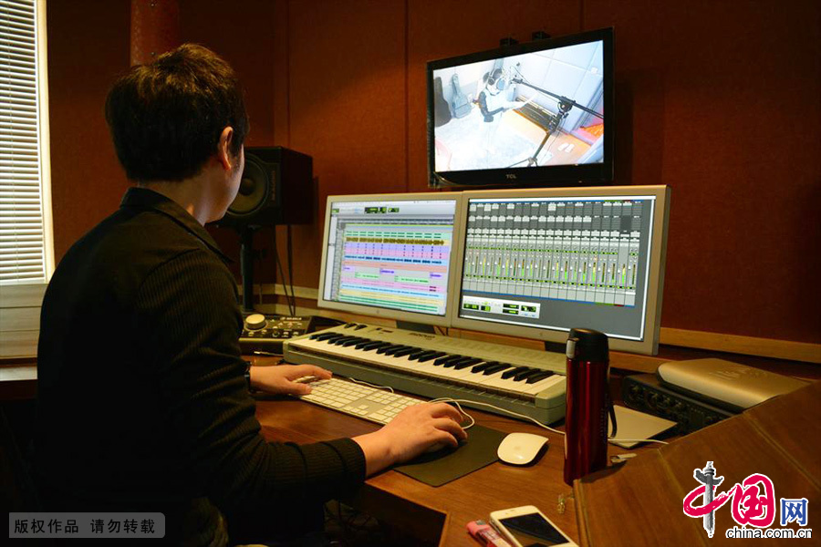 2014年1月8日,开始一天的工作忙碌。在他电脑桌面上,当天有着近10首半成品歌曲等着他去编曲、混音等制作。中国网图片库 石方亮/摄