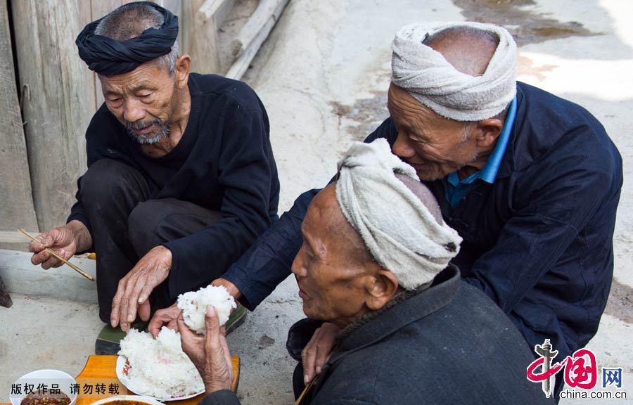 糯米饭是苗族侗族人民的主食之一,在生活中占有重要地位,为男女老幼喜爱之食品,人们认为吃粘米饭不顶饿,味淡,不及糯米饭香,不用菜也能吃下,不用筷子,手捏着吃极为方便。中国网图片库 尹忠摄影
