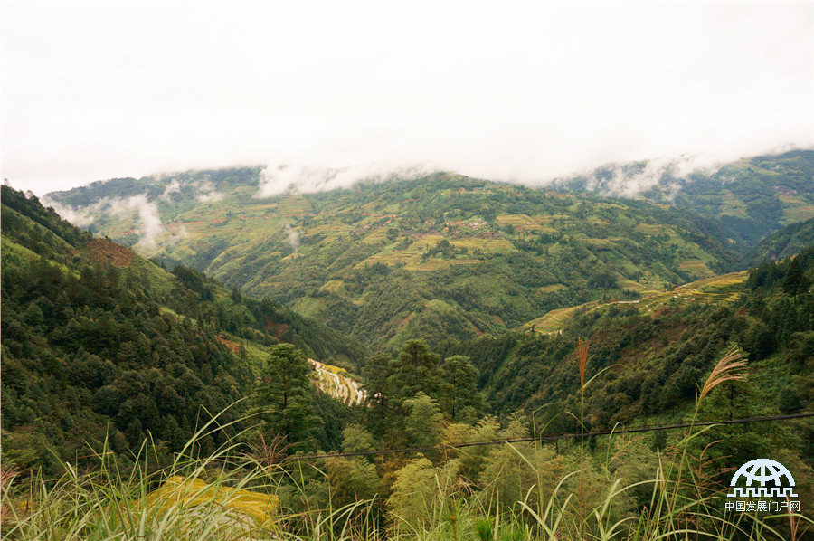 烟雾笼罩恍如仙境的加榜梯田 中国发展门户网 方青/摄