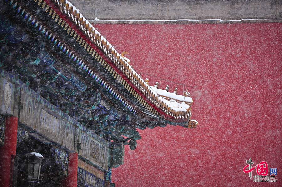北京“小雪”时节大雪纷飞 白雪镶红墙美不胜收[组图]
