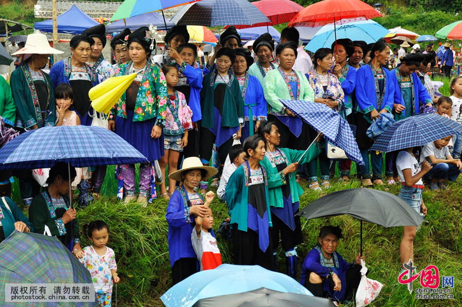 贵州省从江县斗里镇马安村举办“闹鱼节”,群众在观看抓鱼。刘朝富 摄