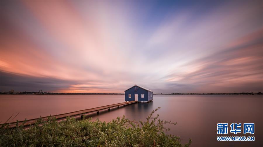 这是7月31日拍摄的澳大利亚珀斯天鹅河畔的船屋。