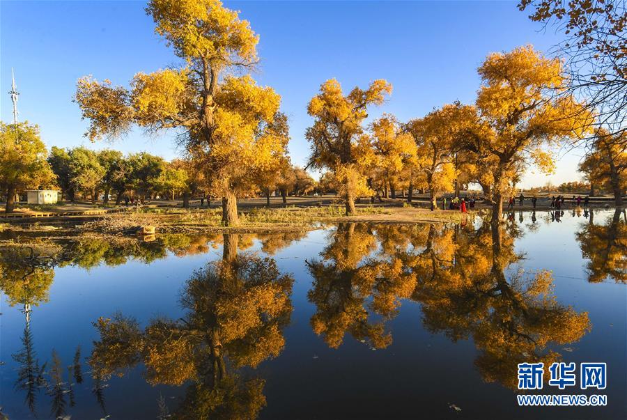 金秋时节,内蒙古自治区额济纳旗胡杨林在阳光中迸发出金色的魅力,梦幻迷人。