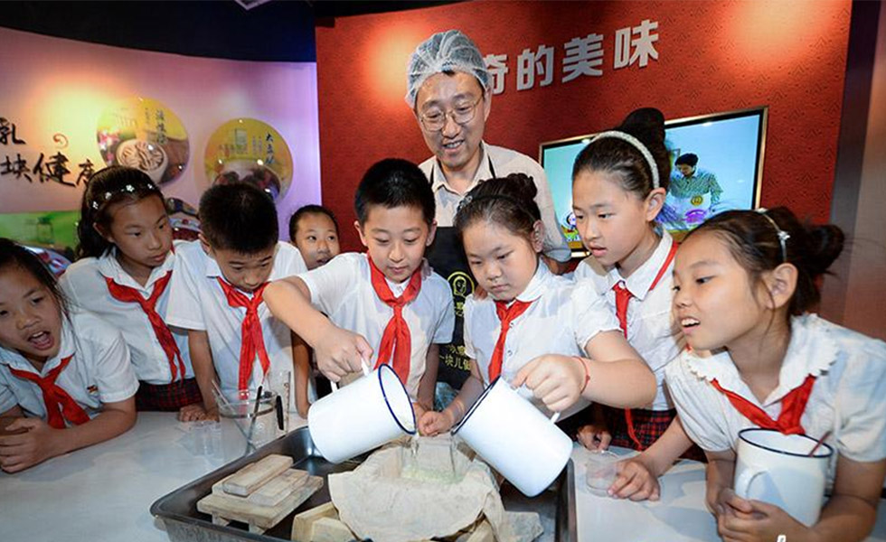 磨豆制浆、点浆压榨、360度全息影像前看腐乳制作……第42个“5.18国际博物馆日”来临之际,首都师范大学附属小学柳明校区124名小学生走进北京市腐乳科普馆。