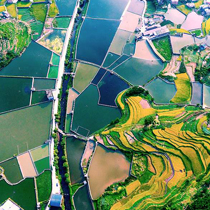 俯瞰重庆金黄色稻田 宛如天然“调色板”