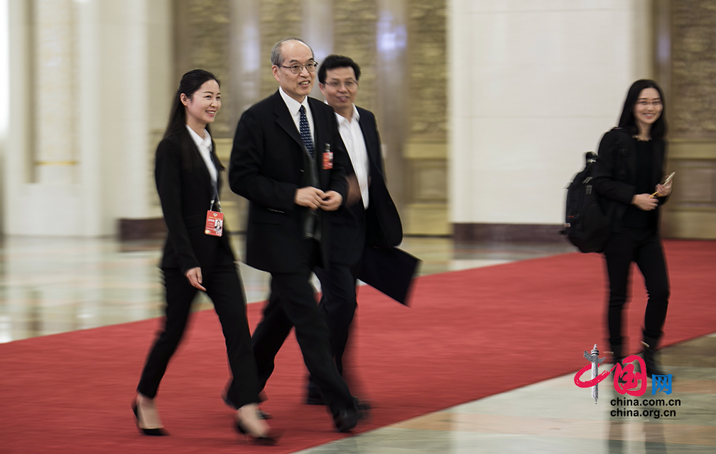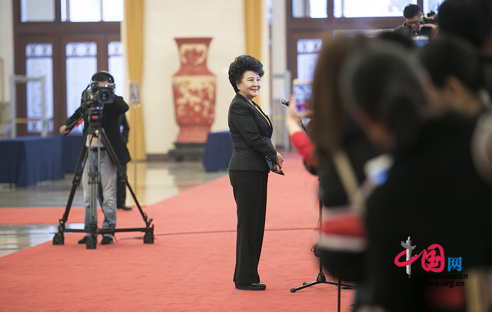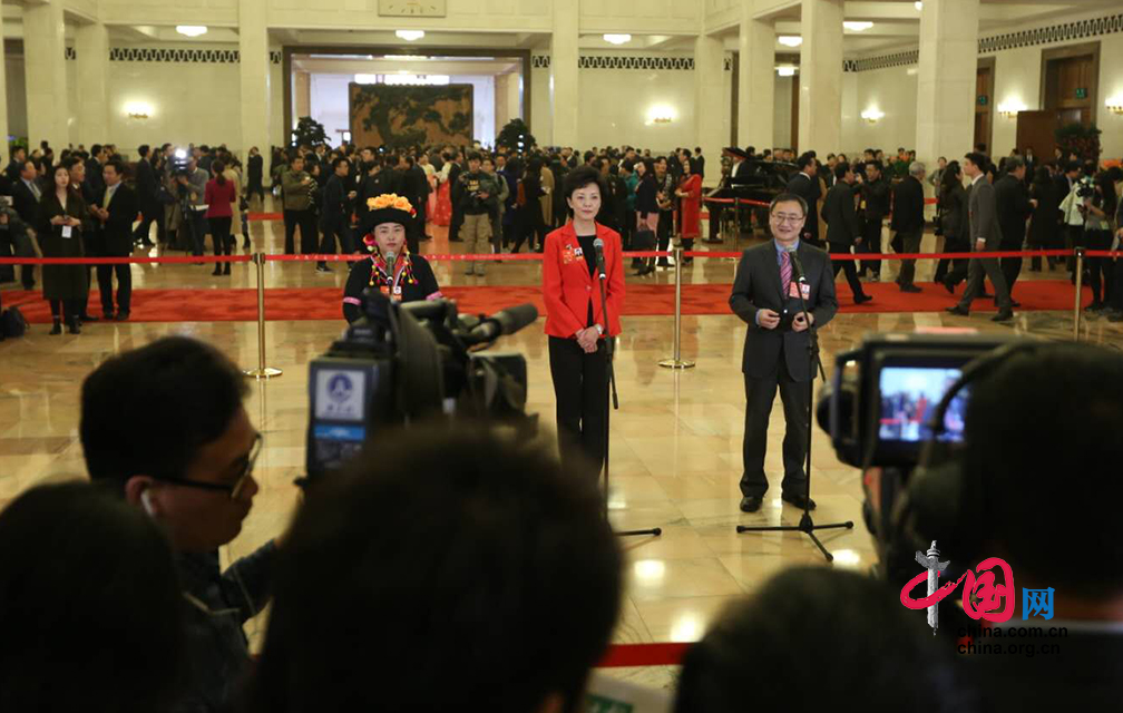 3月3日,中国人民政治协商会议第十三届全国委员会第一次会议在北京人民大会堂开幕。这是国务院侨务办公室主任裘援平在接受采访。中国网 董宁摄影