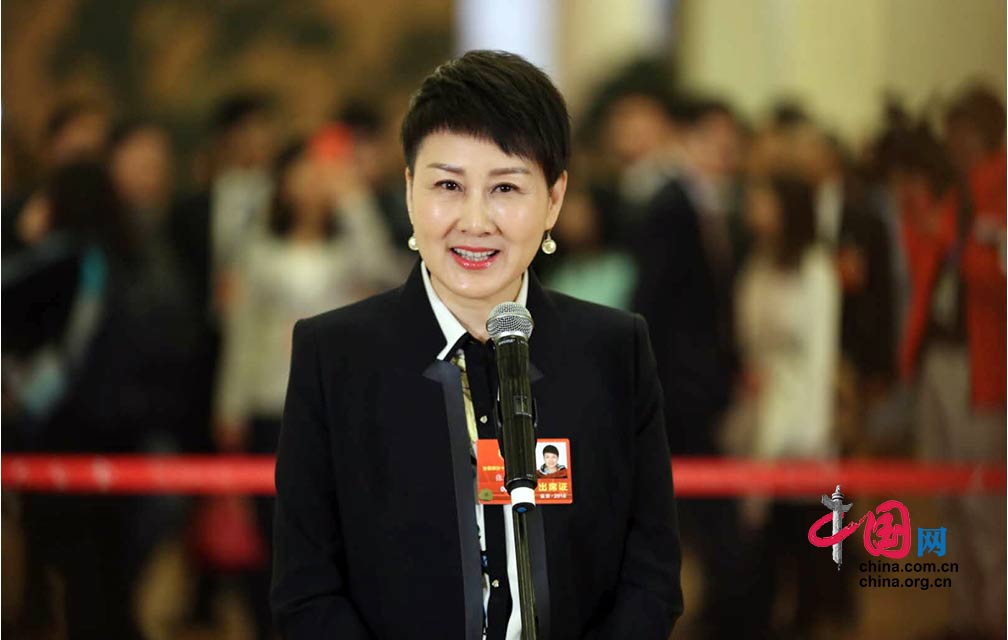 3月3日,全国政协十三届一次会议在人民大会堂开幕,全国政协委员,中国国家话剧院演员张凯丽在首场“委员通道”接受媒体采访。中国网记者 郭天虎 摄