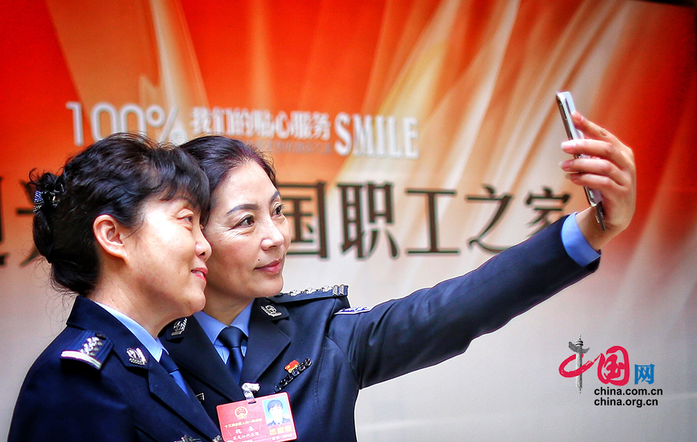 第十三届全国人民代表大会第一次会议期间,两名来自基层的警察代表在职工之家合影留念,作为在同一个岗位上奋战的姐妹,虽然来自不同的地方,却有很多的共同话题。中国网 郑亮摄影