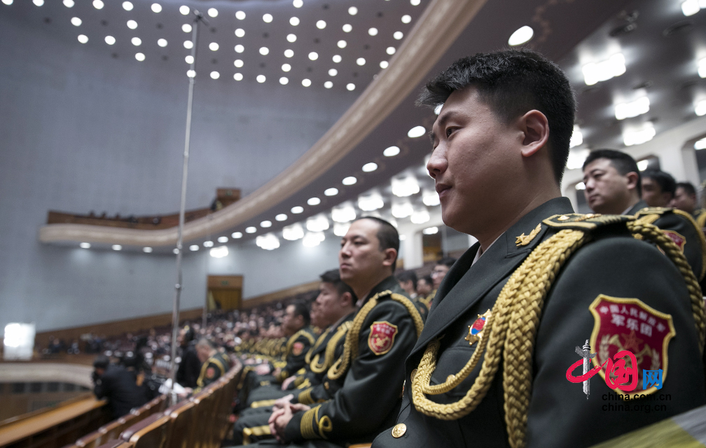 3月3日,全国政协十三届一次会议在北京人民大会堂开幕,图为中国人民解放军军乐团。中国网 董宁摄影