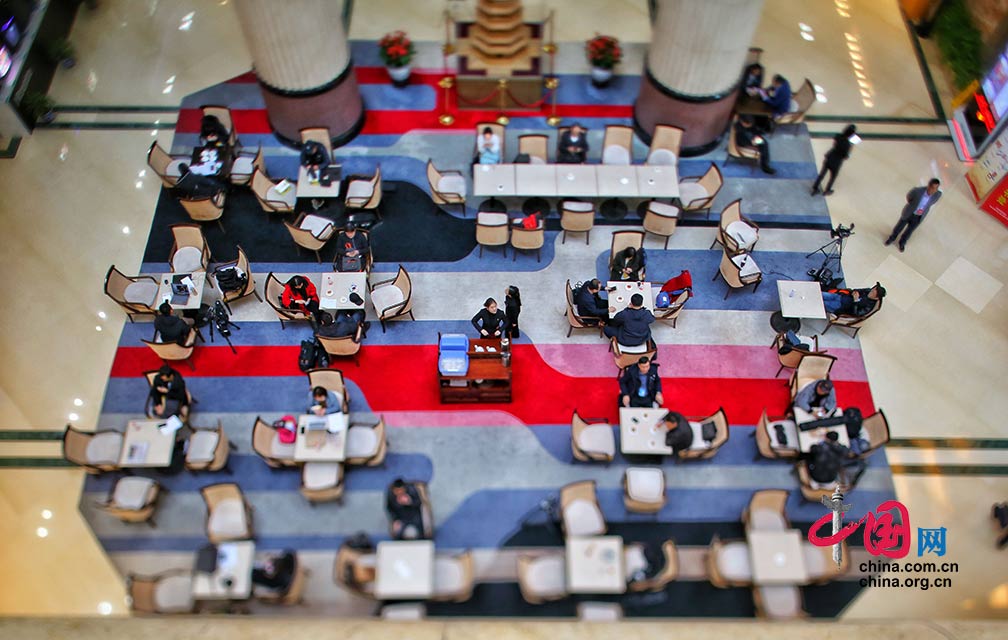 3月5日,十三届全国人大一次会议代表驻地职工之家里的“红白蓝”。中国网 郑亮摄影