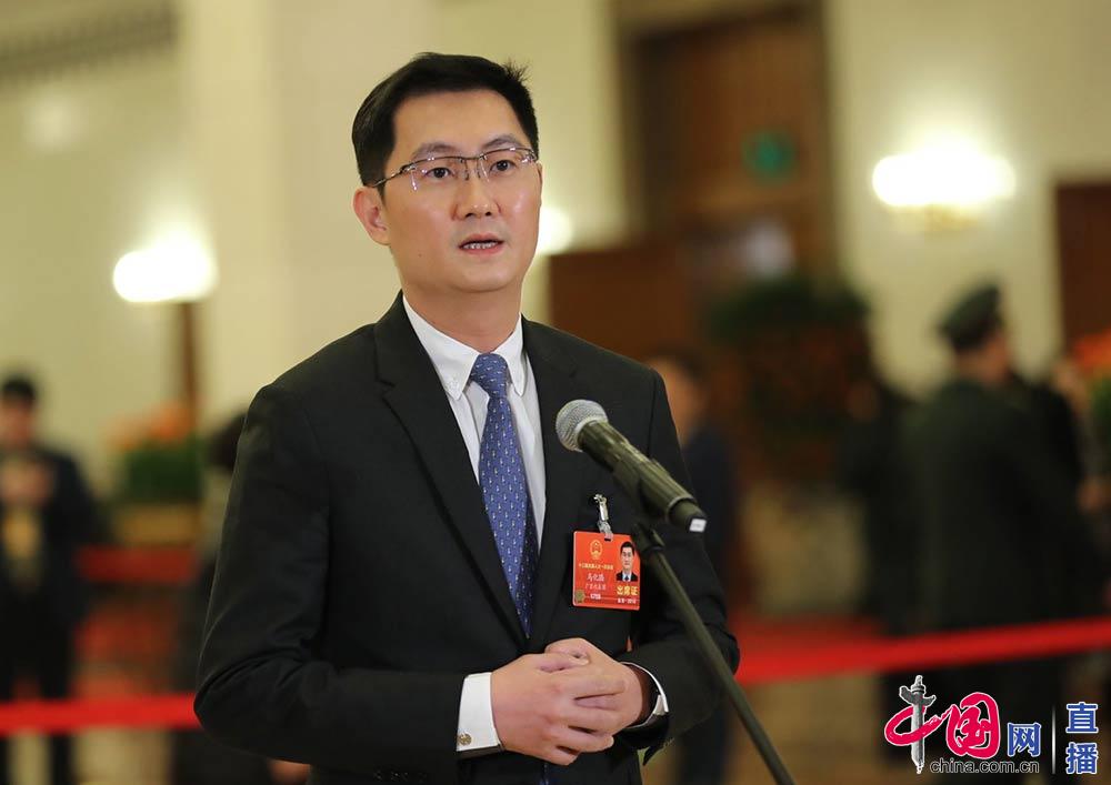 中国网3月5日讯 十三届全国人大一次会议上午9时在人民大会堂开幕。首场“代表通道”集中采访活动开放,腾讯计算机系统有限公司董事会主席、首席执行官,广东代表团马化腾回答记者提问。