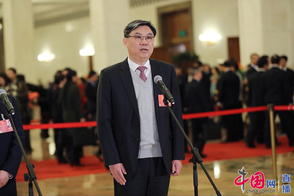 3月5日,十三届全国人大一次会议上午9时在人民大会堂开幕。首场“代表通道”集中采访活动开放,上海汽车集团股份有限公司党委书记、董事长,上海代表团陈虹回答记者提问。中国网 董宁摄影