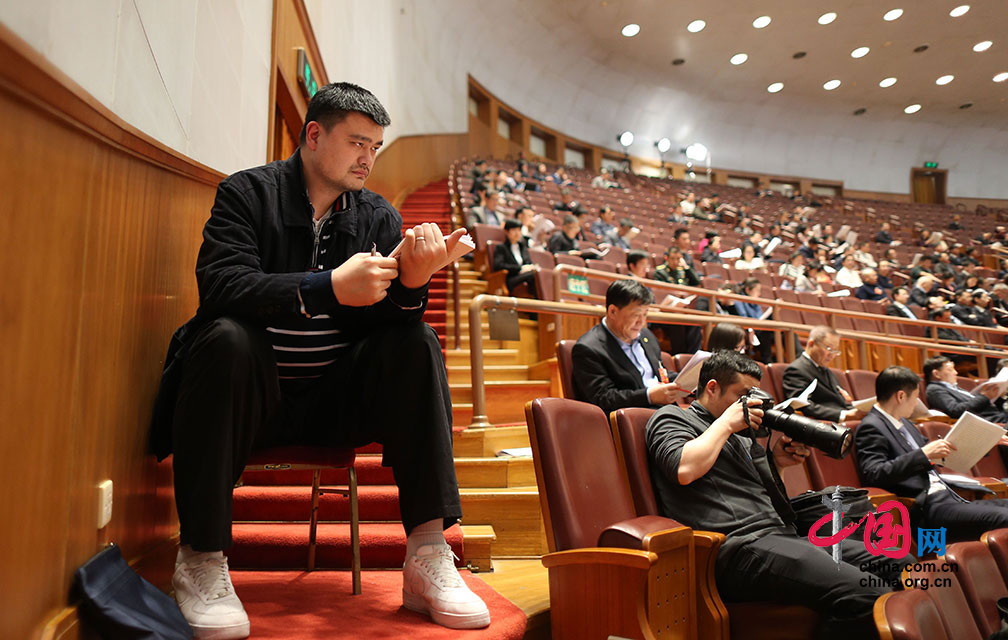 3月9日,十三届全国政协委员姚明列席十三届全国人大一次会议第二次全体会议。中国网 郑亮摄影