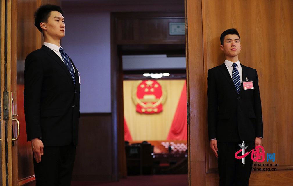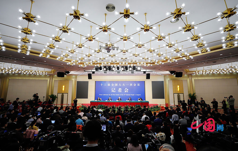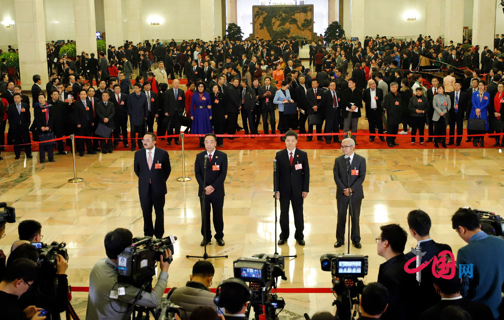 3月9日,十三届全国人大一次会议第二场“代表通道”在人民大会堂中央大厅北侧举行。中国网 杨佳摄影