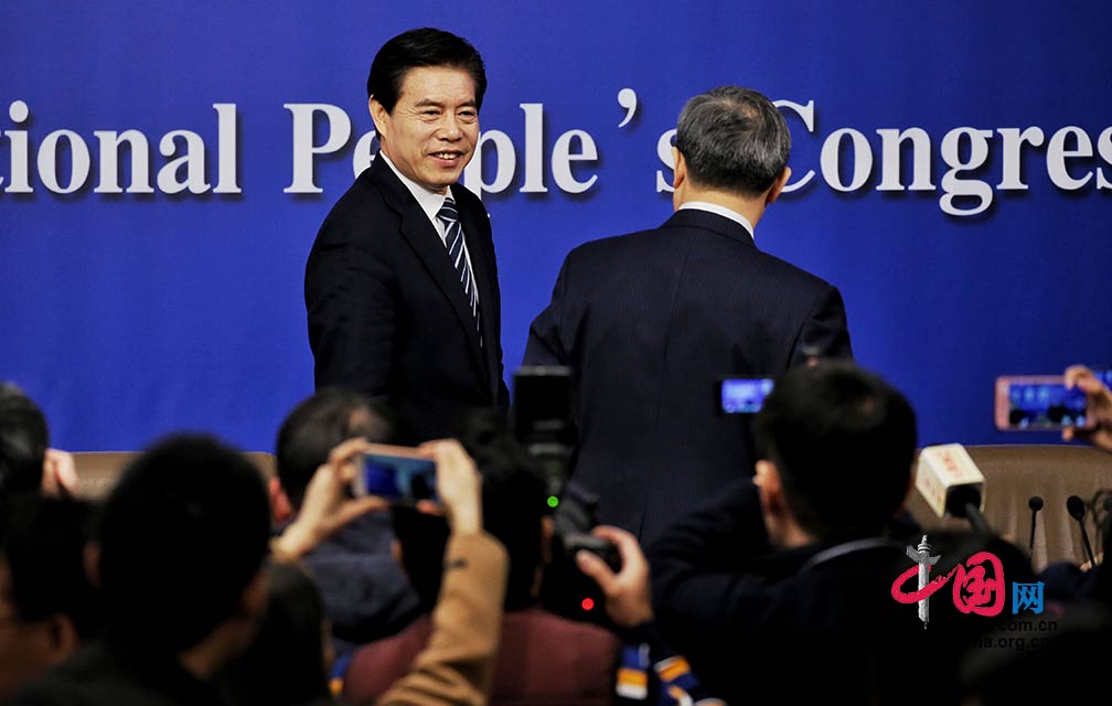 3月11日,商务部部长钟山等就“推动形成全面开放新格局 推动商务事业高质量发展”答记者问。中国网 郑亮摄影