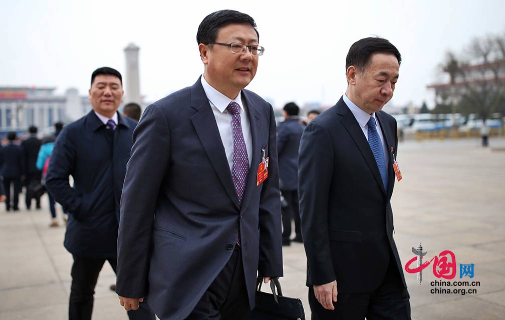 3月11日,十三届全国人大一次会议举行第三次全体会议,北京代表团全国人大代表陈吉宁步入会场。 中国网 郑亮摄影