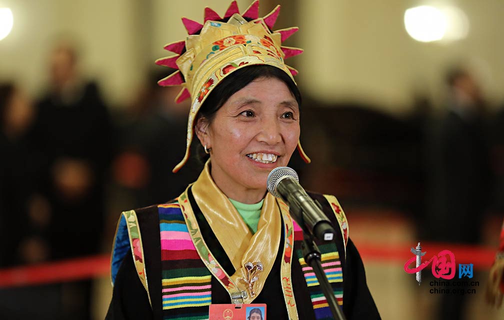 3月11日,来自西藏自治区隆子县玉麦乡玉麦村的村务监督委员会主任卓嘎首次当选全国人大代表,第一次来到北京,用藏语回答记者提问。56岁的卓嘎所在的玉麦乡地处喜马拉雅山脉南麓,几十年来,卓嘎姐妹及父亲一家扎根边陲,谱写了爱国守边的动人故事。中国网 董宁摄影