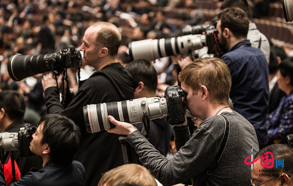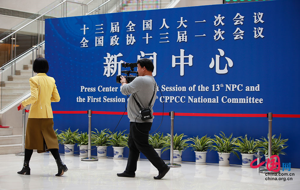 3月13日,十三届全国人大一次会议第四次会议现场的国外媒体。中国网 郑亮摄影