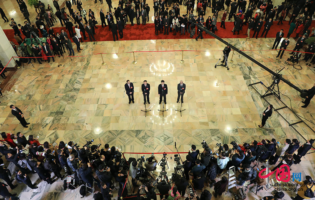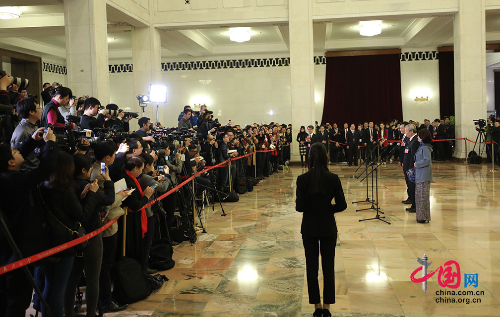 3月9日,第二场“代表通道”集体采访现场。中国网 董宁摄影